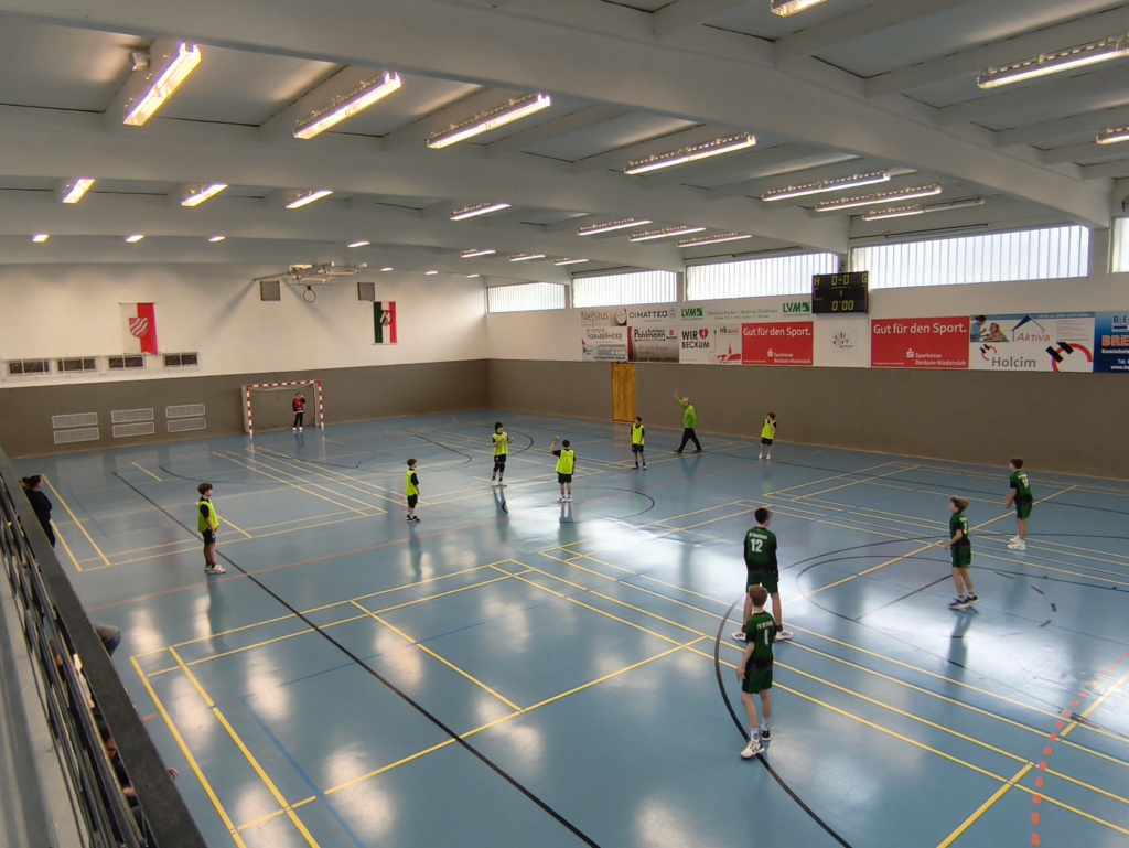 Am vergangenen Samstag stand auch für die D-Jugend des HC Heeren-Werve das erste Punktspiel im neuen Jahr an. Bereits im Hinspiel in Heeren war das Team des TV Beckum ein unangenehmer Gegner und hatte die Heerener ordentlich gefordert. Und auch im Rückspiel in Beckum zeigten die Gastgeber sich spielstark. Direkt am Anfang gingen sie in Führung und kamen immer wieder mit starken Einzelerfolgen zu erfolgreichen Torabschlüssen. Die Heerener Kinder brauchten etwas Zeit, um sich auf ihre Gegner einzustellen und die Räume konsequent zuzustellen. Im Laufe der ersten Halbzeit gelang das jedoch immer besser, so dass es in der 15. Minute erstmals einen Gleichstand gab. In der Folge gelang es dem HC Heeren-Werve mit einer konzentrierten Vorstellung den Vorsprung Stück für Stück auszubauen, sodass das Team aus Heeren zwischenzeitlich sogar mit vier Toren in Führung lag.